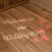 お2人のお名前・ご披露宴の日付やウェディングシーンに合わせた光の文字を投影いたします。文字にワンポイ …