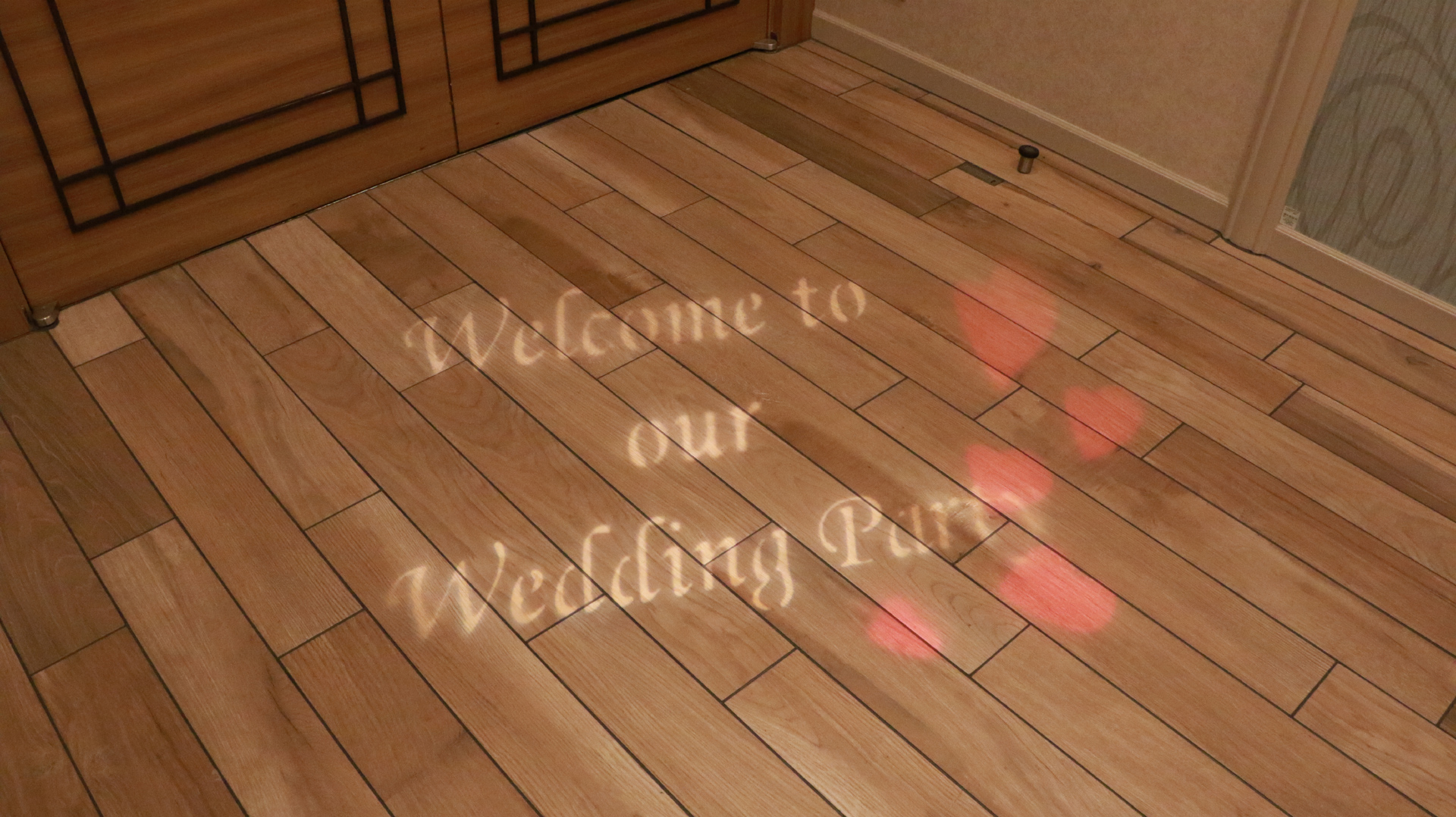 お2人のお名前・ご披露宴の日付やウェディングシーンに合わせた光の文字を投影いたします。